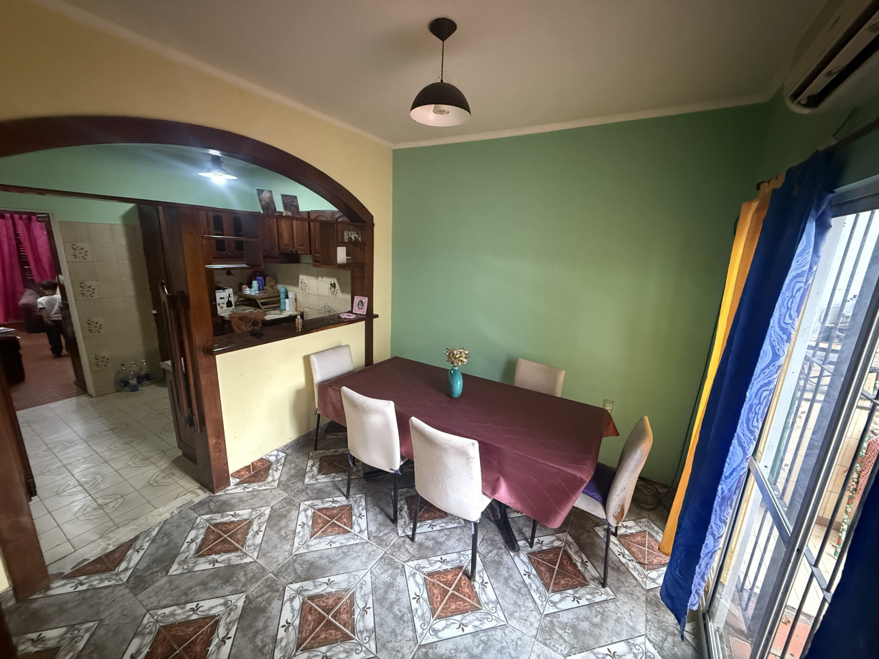 Al ingresar, encontramos un living-comedor luminoso, equipado con ventana al frente y hogar a leña, ideal para calefaccionar y crear un ambiente acogedor. Luego, a través del living, accedemos a la cocina amoblada, que cuenta con mesada, bajo mesada y alacena.