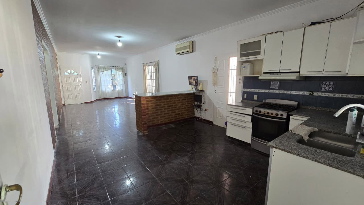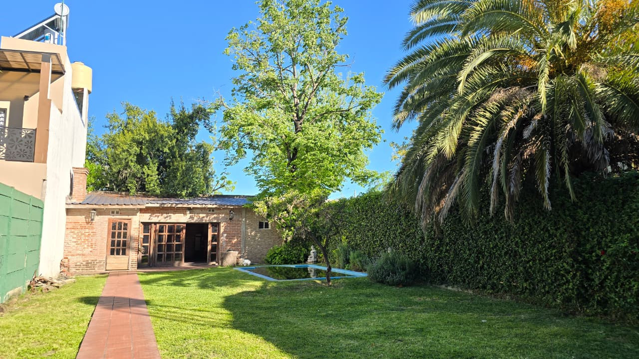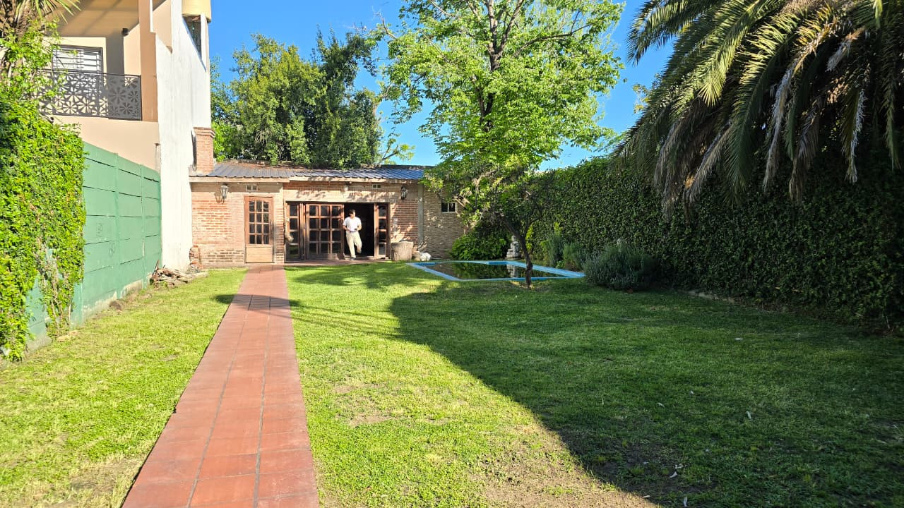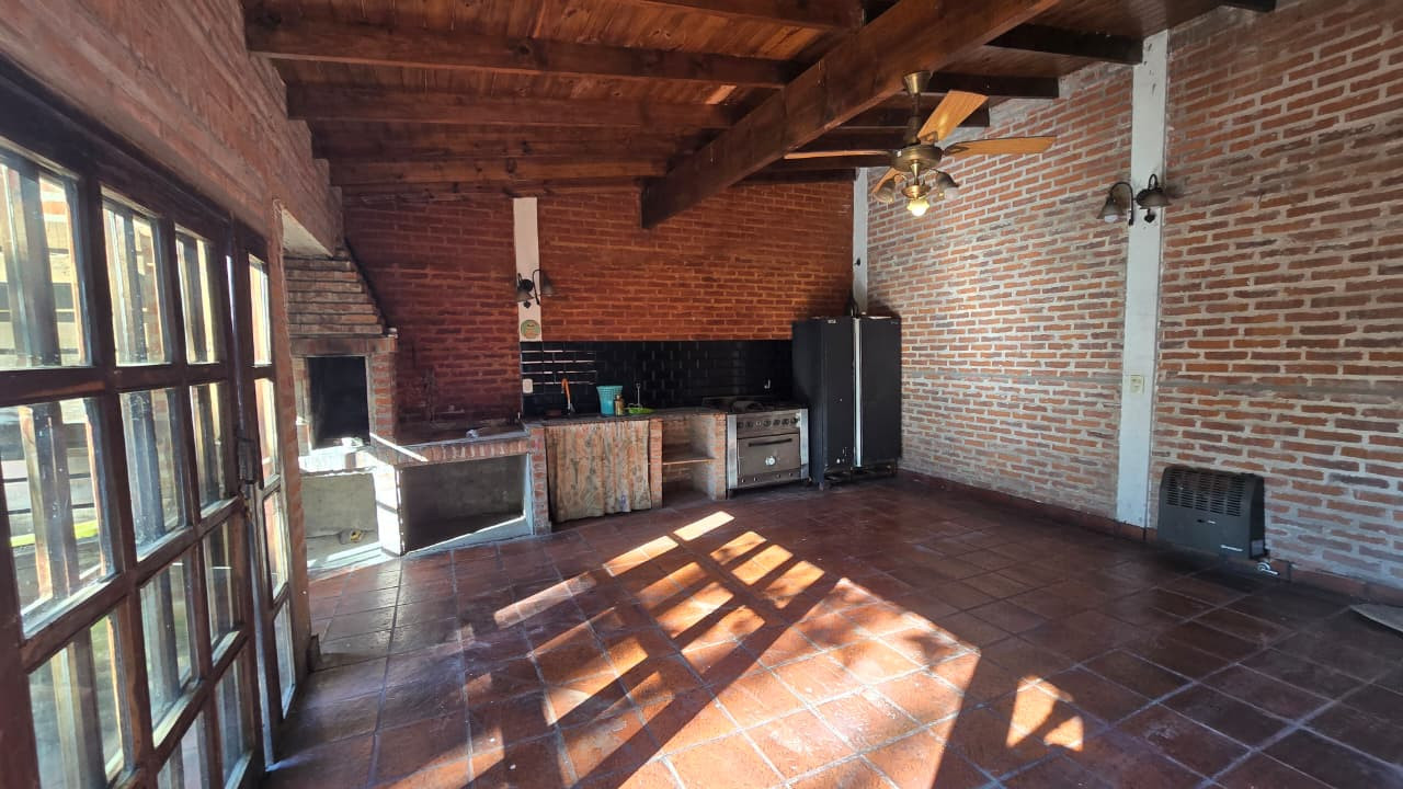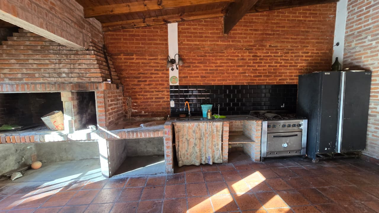 Al fondo se encuentra un quincho de 7,30 m x 5,30 m, con techo de chapa y paredes de ladrillo común. Incluye: