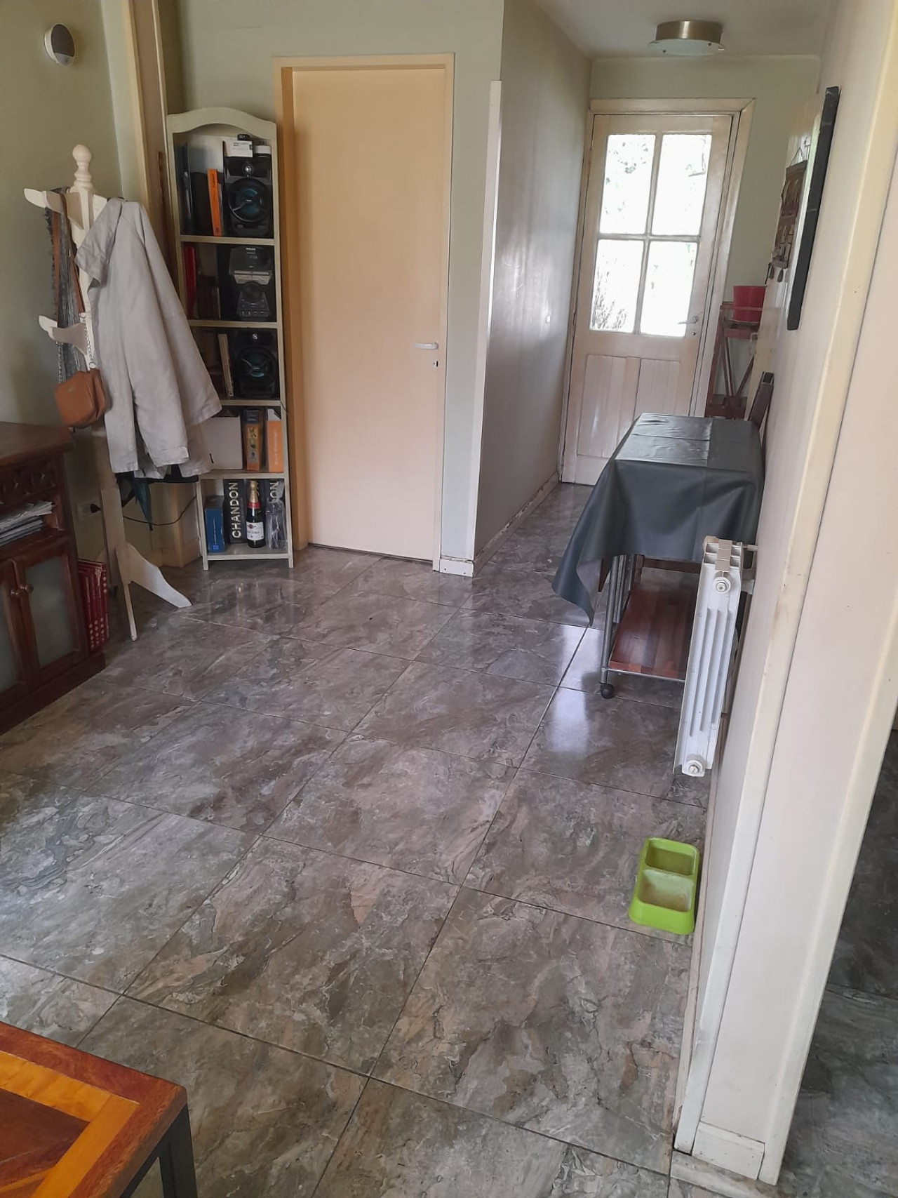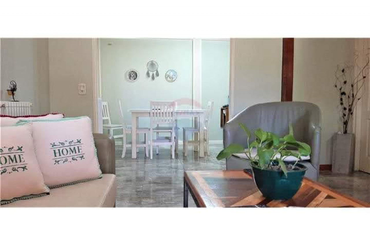 En la Planta Baja nos encontramos con un living comedor con pisos de ceramico con aire acondicionado, comedor diario, cocina comedor con bajo mesada, lavadero, baño completo y salida al patio trasero con parrilla y pileta de 5,20 x 2,60 completa.