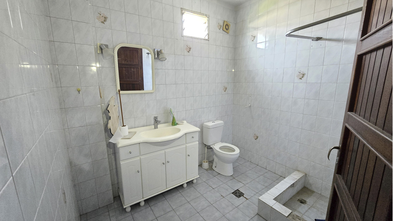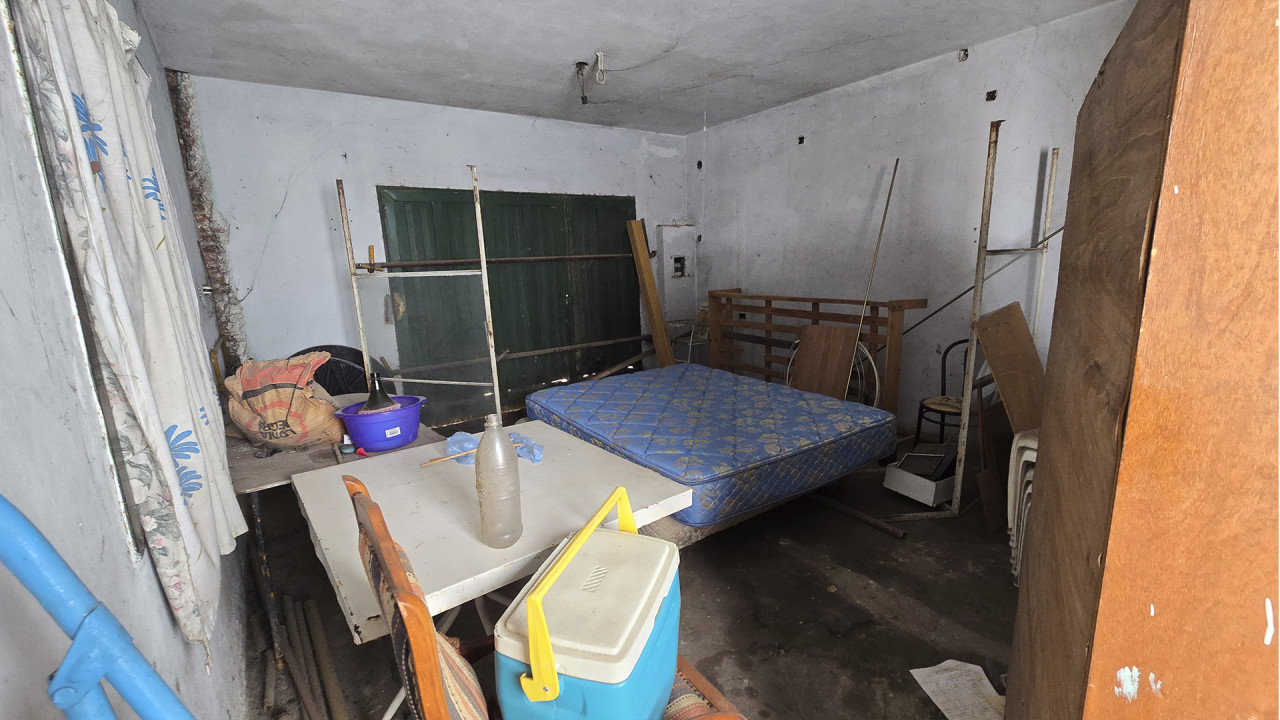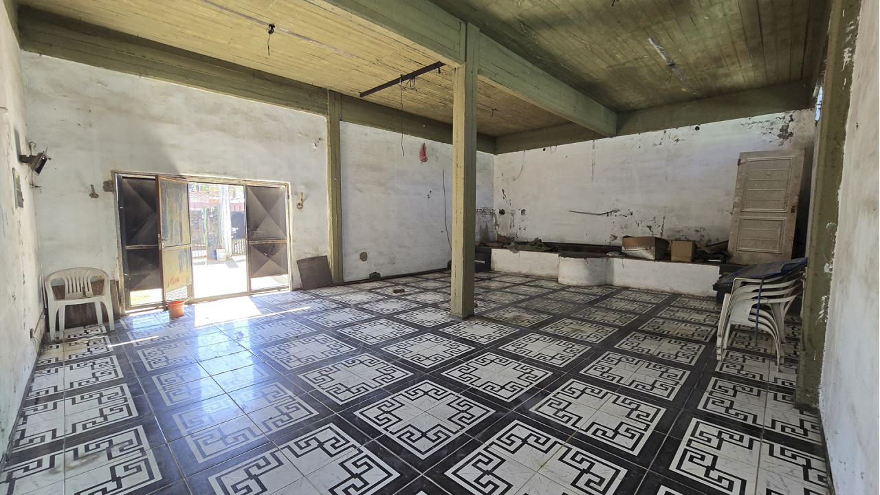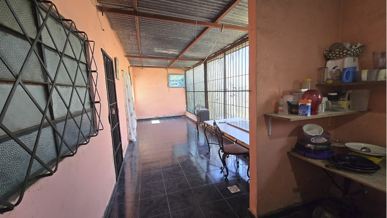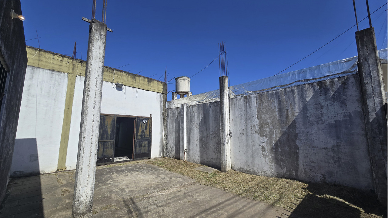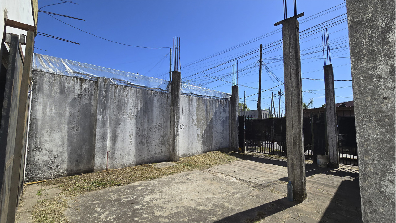 Al lateral derecho se encuentra un espacio libre de 7,5 m x 5,5 m, con seis columnas preparadas para la construcción de un techo o futura ampliación. La construcción central, de 10 m x 8 m, cuenta con losa, columnas y vigas estructurales aptas para edificar en planta alta, con acceso hacia el fondo del terreno que conduce a la vivienda principal.
